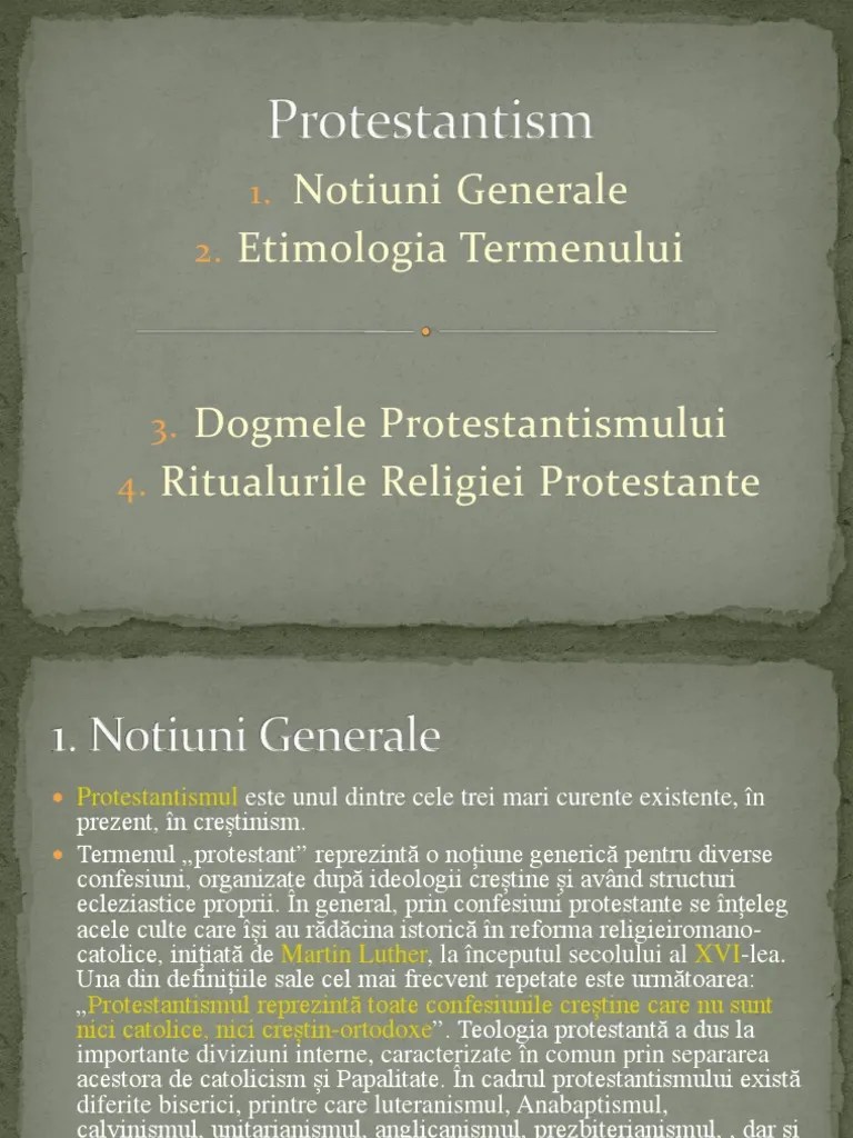 In privinta perfectiunii, a apropierii de original, a unei doctrini religioase crestine, sa stii ca aceasta evoluiaza doar in functie de cunoasterea scripturilor si a relatiei cu. Protestantismul este unul dintre cele trei mari curente existente în prezent în creştinism. De fapt, nu există o religie protestantă. Să analizăm acum trei aspecte sub care martorii se deosebesc de religiile protestante. Protestanţii înşişi nu ar fi de acord cu această expresie.istoric, protestantismul a apărut ca schismă în cadrul bisericii catolice.